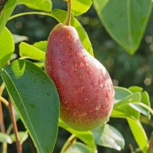 - Правильной узко-ромбической или удлинённо-грушевидной формы, зеленоватого, а при полной зрелости – зеленовато-жёлтого, с небольшим красноватым покровом, цвета. Кожица умеренно толстая, немного маслянистая, покрыта слабым восковым налётом. Мякоть средне плотная, приятная и сочная, полумаслянистая, кремового цвета. Семечки средние, коричневого цвета, по форме напоминают конус;